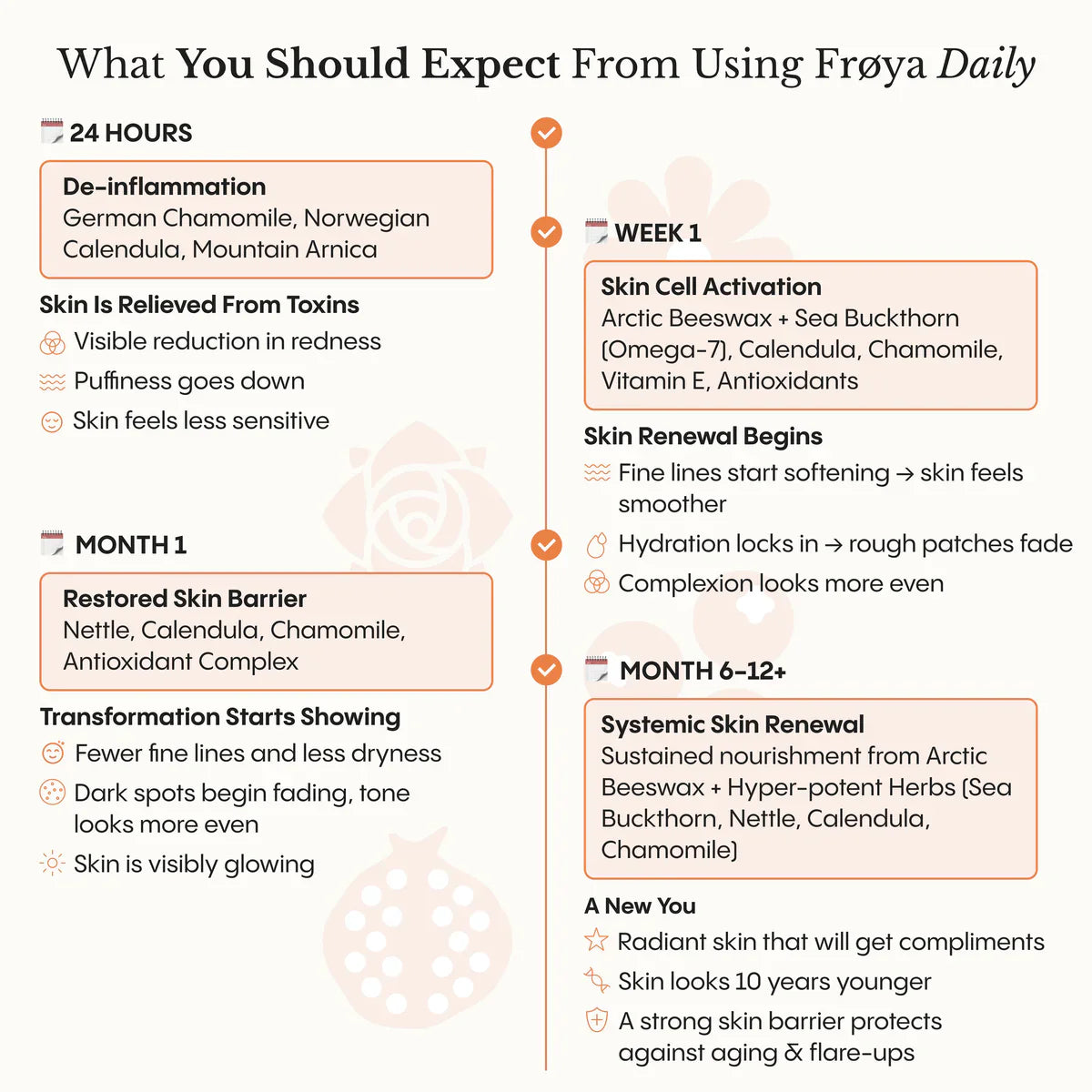 The results are proven to be better than unnatural brands that use chemicals. As a non-medicated, 100% natural formula, Frøya Organics does not include any ingredients that change your body’s metabolism or have hormone-disrupting effects knocking your hormones out of balance. We work with your body, not against it!Many brands add parabens, sodium laureth sulfate and benzophenone to their products. These ingredients are proven to disrupt hormones and harm fertility. Not good. They can work short term but long term they actually add more stress, acne and wrinkles to your skin.