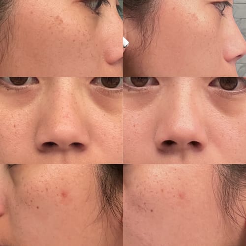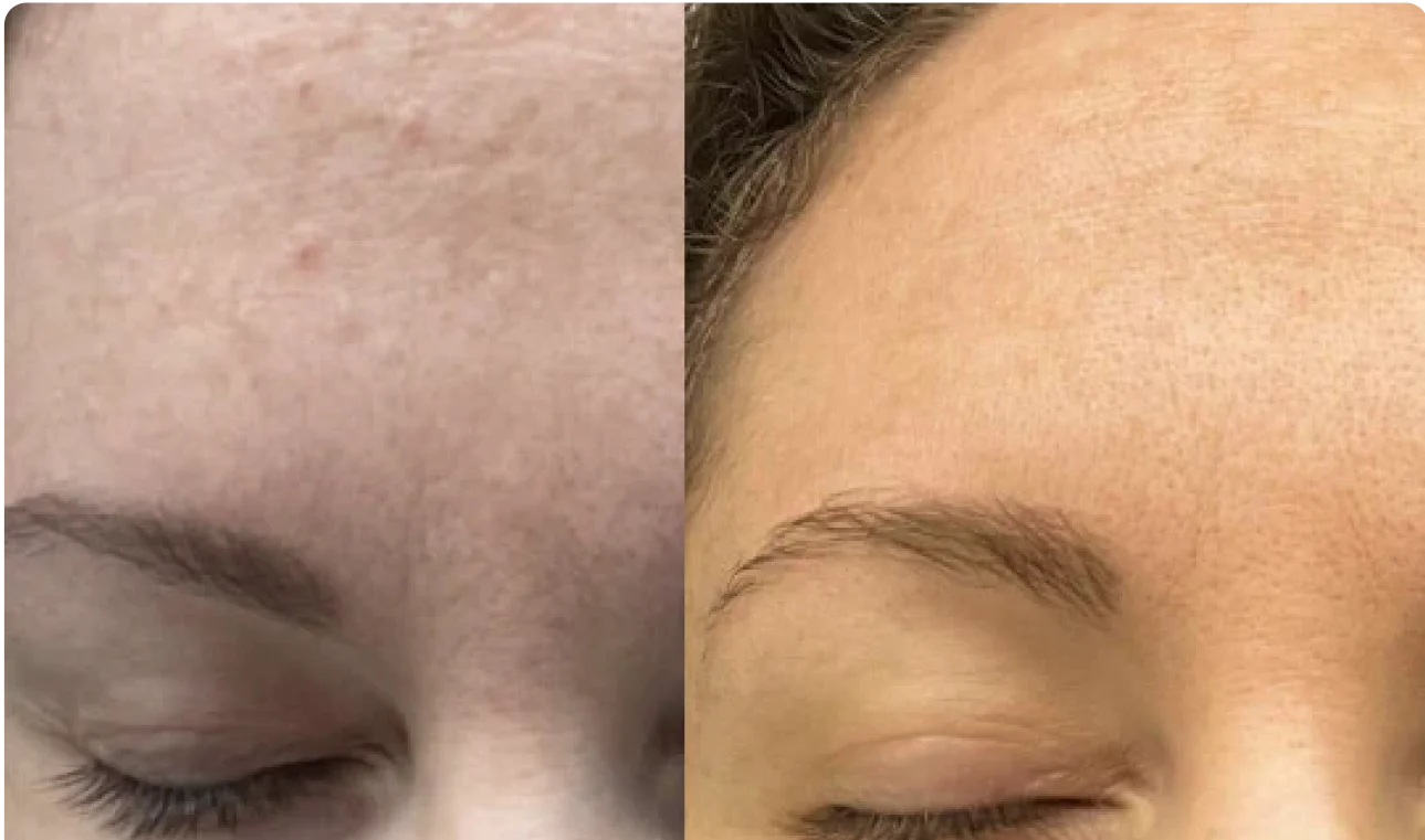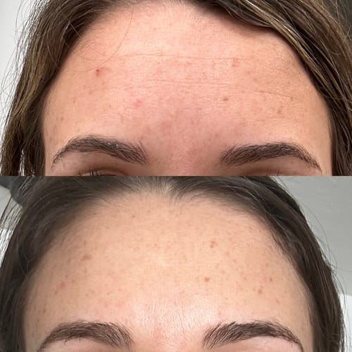 Wow. i'm shook.l was hesitantabout this skincare line, but l cannotbelieve the results. Two months laterand likely with MORE sun damagemy skin looks amazing. To saylcan get results like this withoutmedication is wild. l'm super proneto freckles and dark spots and myforehead wrinkle is pretty muchdisappeared. The only item i'm not afan of is the cleansing powder; tooafraid it will mold.. So l just useaquaphor in the shower.