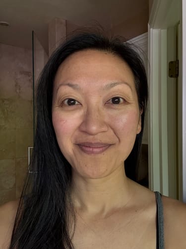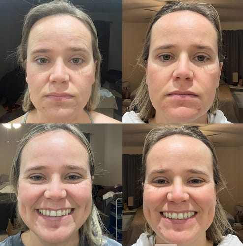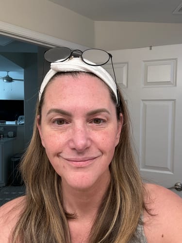 I'm only 3 weeks into the journeyand my skin is already so happy!Fine lines are diminishing, and myskin tone is even-ing out. Thephotos are no makeup, no filter,same time of day, same room. Age62. Love!!
